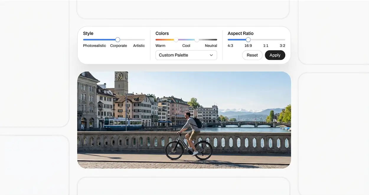 Train AI on your brand’s visual identity — products, people, scenes, or illustration style. Every generated image stays 100% on-brand.