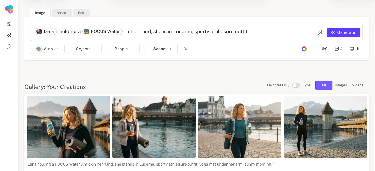 Train AI on your brand style, products, people and scenes – your team creates unlimited on-brand visuals without designers.